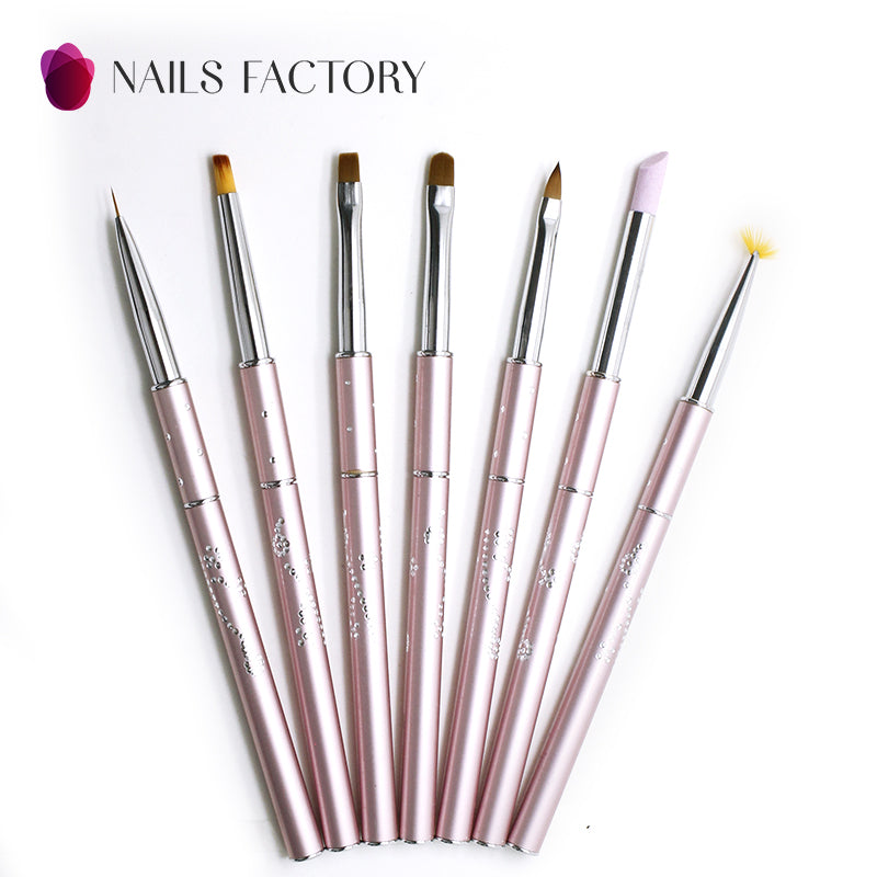 Ensemble de 7 pinceaux à gel avec lime à cuticules, rose